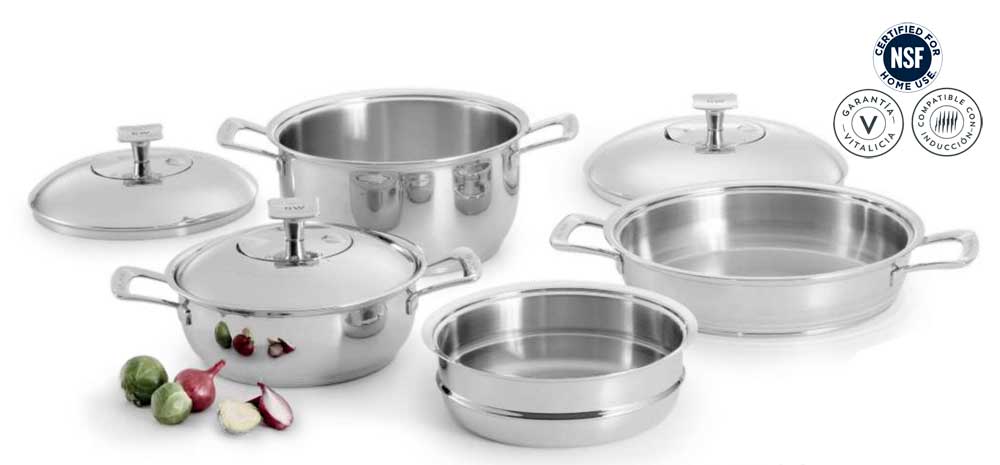 Ollas de alta gama con control de temperatura, sin aceite, sin tóxicos.