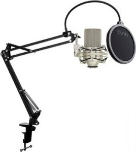 - Principiante portátil: Mic USB cardioide con monitorización directa + brazo + antipop.