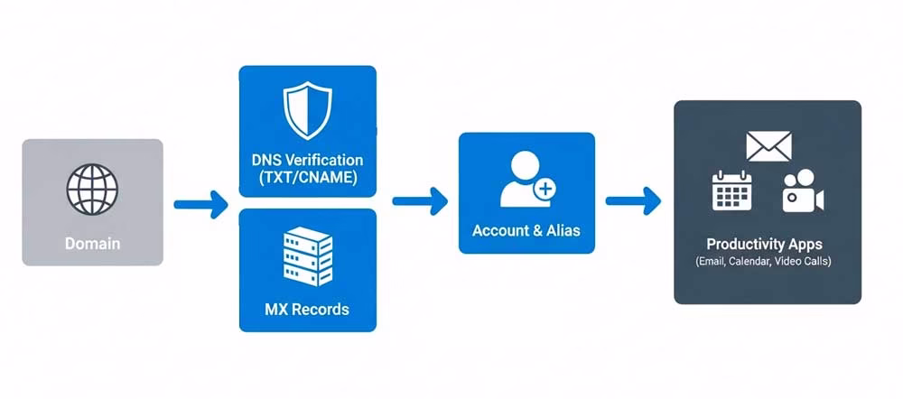 Resultado: en pocas horas puedes tener @tudominio.com operativo con videollamadas, almacenamiento y colaboración. En mi experiencia con equipos pequeños, este arranque “guiado” reduce tickets y evita errores de DNS típicos.